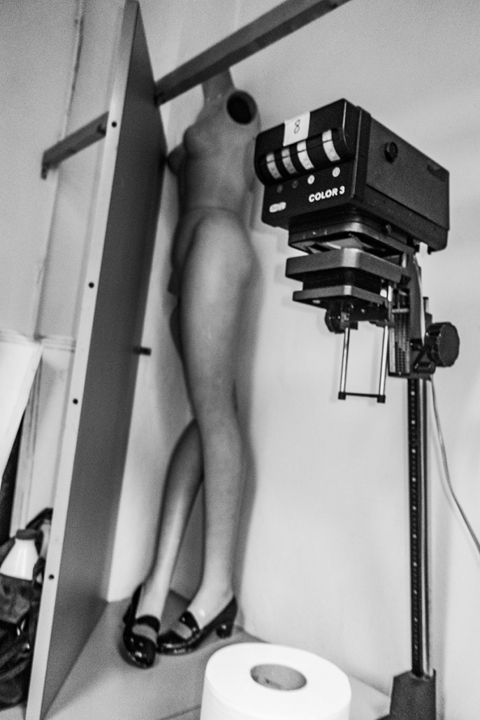 Cajas llenas de fotos, ampliadoras, máquinas rotas de fotos, olor a cubetas y manchas de líquidos entre cachivaches y maniquíes sin cabeza, el sueño para cualquier fotógrafo como yo. Deseo de verdad algún día quedar fascinado por el rayo de alguno de esos alumnos.